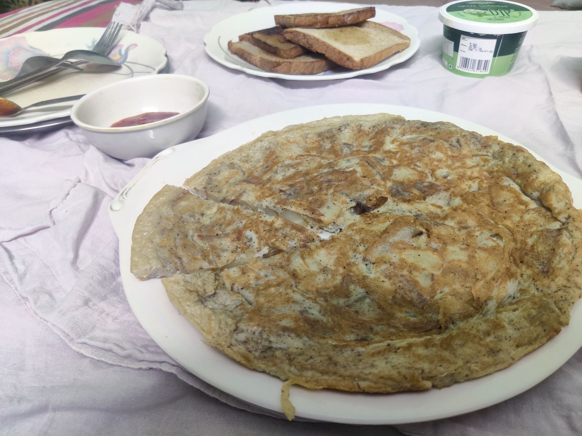 This recipe was recommended by Artem Sidorenko, who resides in Barcelona, Spain. Tortilla de Patatas is an omelette made with eggs and potatoes, sometimes including onion. For this particular dish, I used six eggs and filled them with slices of potato. It was substantially heavier compared to a typical Indian breakfast, where we usually have toast or something like Poha. The taste of the tortilla was further enhanced by dipping it in ketchup.