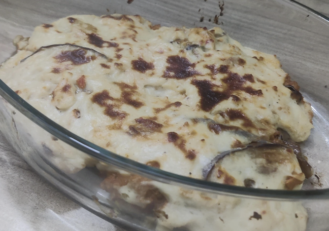 Moussaka turned out to be similar to a savory slice of cake. It had a spicy and rich flavor. Although the dish didn't look perfect due to the mishap, we managed to transfer it to a different bowl and still enjoyed its incredible taste.